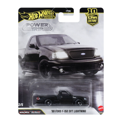 Машинка Premium Hot Wheels ’99 Ford F-150 SVT Lightning Power Trip 1:64 JKF33 Black — это коллекционная модель, воплощающая американскую философию мощности и стиля конца 90-х. Легендарный SVT Lightning стал символом эпохи, когда пикапы перестали быть просто рабочими автомобилями и превратились в настоящие performance-машины. В премиальном исполнении Hot Wheels модель выглядит максимально брутально и аутентично.