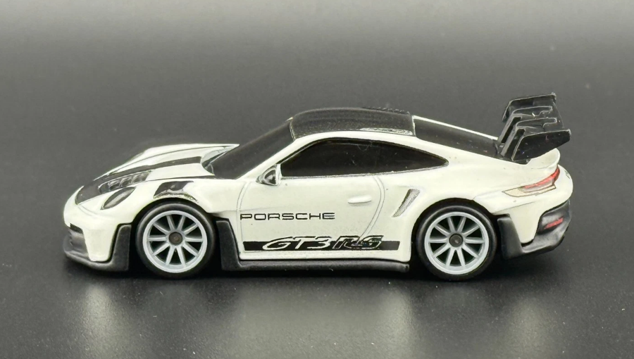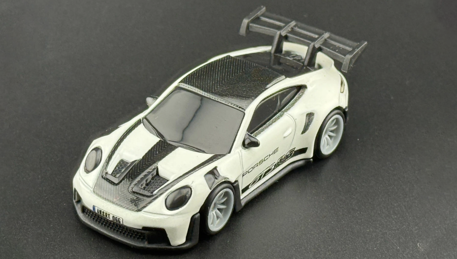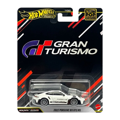 Модель выполнена в масштабе 1:64 и относится к Premium-серии Hot Wheels, что гарантирует металлический корпус die-cast, увеличенный вес и высокую точность проработки деталей. Porsche 911 GT3 RS 2022 года легко узнаётся благодаря агрессивному аэродинамическому обвесу, массивному антикрылу и спортивным пропорциям. Белый цвет кузова подчёркивает гоночный характер автомобиля, а тематические элементы серии Gran Turismo придают модели уникальный стиль.