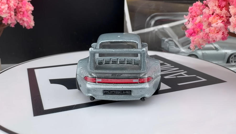 Модель Porsche 993 GT2 в сером цвете выполнена по самым высоким стандартам серии Premium, что сразу заметно по весу и тактильным ощущениям. Использование технологии Metal/Metal означает, что и кузов, и шасси отлиты из металла, что обеспечивает долговечность и солидность модели. Особого внимания заслуживают колеса Real Riders — это аутентичные диски с резиновыми покрышками, которые имеют реалистичный протектор и позволяют машинке мягко и бесшумно двигаться по поверхности. Лакокрасочное покрытие в оттенке Grey идеально подчеркивает массивные расширенные арки и огромное антикрыло, являющееся визитной карточкой модификации GT2. Тампопечать выполнена максимально четко: передняя оптика, детализированные задние фонари и эмблема Porsche на капоте выглядят так, будто их наносили на настоящий спорткар. Внутренний интерьер, который отлично просматривается через прозрачное остекление, также получил проработку, добавляющую глубины этой миниатюре в масштабе 1:64.
