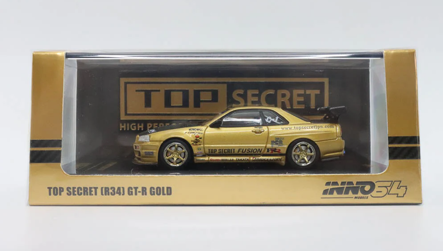 Машинка Premium INNO64 Nissan Skyline GT-R (R34) TOP SECRET 1:64 IN64-R34TS-GOLD — это не просто масштабная модель, а концентрат истории, стиля и духа японского автоспорта. Она станет ярким акцентом в коллекции, подчеркнет вкус владельца и подарит настоящее удовольствие от владения качественной и аутентичной моделью в масштабе 1:64.
