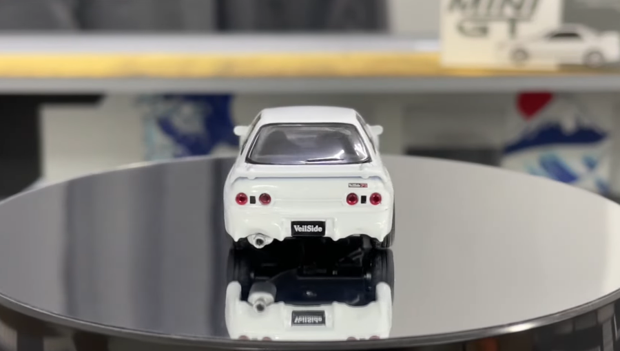 Модель MGT01066-CH от бренда MINI GT выполнена с использованием технологии Die-cast, что обеспечивает приятный вес и прочность металлического корпуса. Особое внимание уделено обвесу VeilSide Combat: массивные бамперы, специфические боковые юбки и узнаваемое антикрыло воссозданы с хирургической точностью. Покраска в белый цвет имеет глубокий глянец, который подчеркивает сложные линии кузова R32. Резиновые шины с аутентичным протектором надеты на детализированные диски, соответствующие стилистике Combat. Оптика модели заслуживает отдельного упоминания — передние фары и задние фонари выполнены отдельными пластиковыми элементами, а не просто прорисованы краской, что добавляет взгляду машинки глубины и реализма. Зеркала заднего вида изготовлены из мягкого материала, что защищает их от случайных повреждений, характерных для хрупких моделей других брендов.