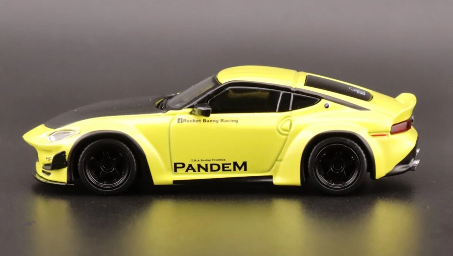Машинка выполнена в масштабе 1:64 и точно передает пропорции и ключевые особенности Nissan Z в версии Pandem: расширенные крылья, агрессивный аэродинамический обвес, форму кузова, оптику, диски и спортивные элементы дизайна. - Яркий желтый цвет