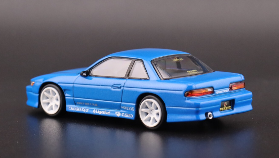 Машинка Premium Tarmac Works VERTEX Nissan Silvia S13 GLOBAL64 1:64 T64G-025-PL Blue станет отличным выбором для тех, кто ценит JDM-наследие, детализацию и аутентичность. Она объединила культовый дизайн, премиальное исполнение и коллекционную значимость, делая её заметным и желанным экспонатом в любой серьёзной автоколлекции.