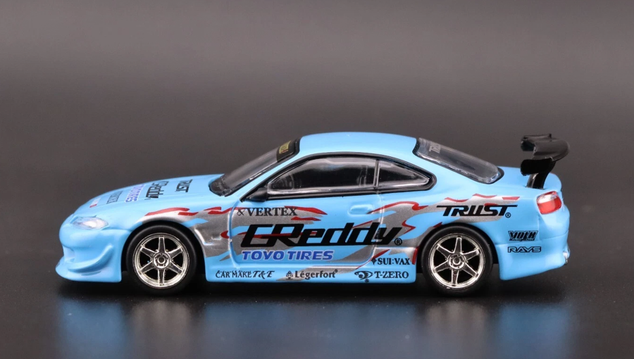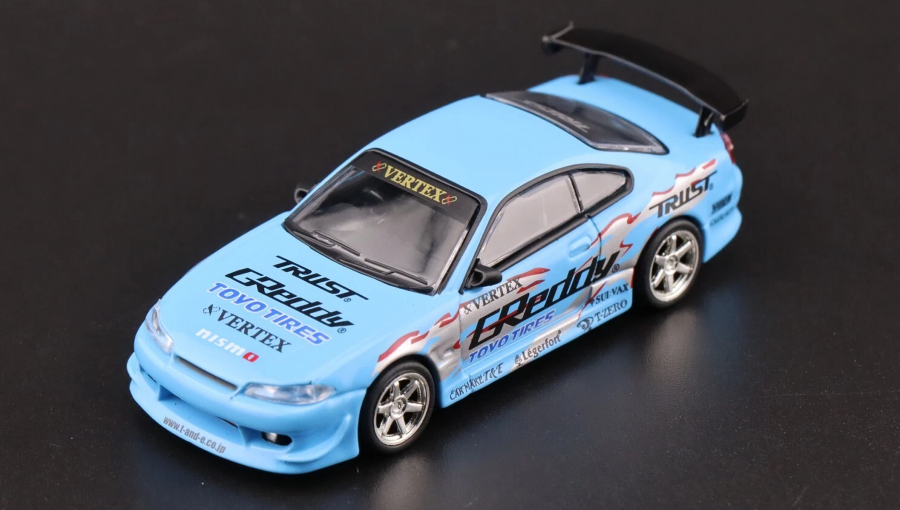 Машинка Premium Tarmac Works VERTEX Nissan Silvia S15 GReddy – Mijo Special 1:64 T64G-023-GDY Blue стала ярким воплощением современной JDM-эстетики и дрифт-сцены. Она воссоздаёт культовую Nissan Silvia S15 в тюнинг-конфигурации VERTEX с фирменными элементами GReddy, передавая агрессивный характер и стиль японских спортивных автомобилей. Насыщенный синий цвет подчёркивает форму кузова и делает модель визуально выразительной среди других коллекционных машинок.