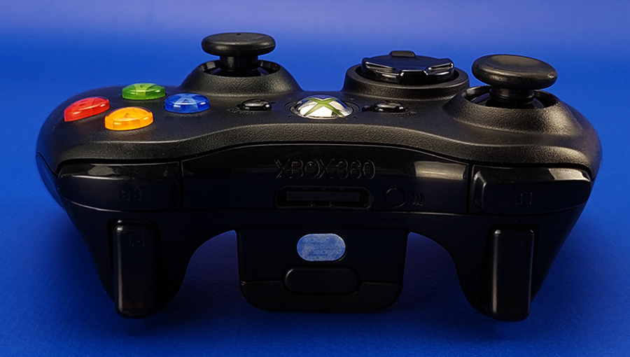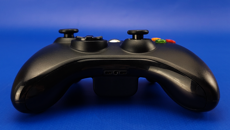 Беспроводной геймпад Xbox 360 представляет собой стильный и элегантный контроллер, выполненный в черном цвете, который лежит в руках игрока с особым комфортом. Этот контроллер соответствует традиционной компоновке, включающей два стика для больших пальцев, панель направлений, четыре лицевые кнопки, две плечевые кнопки и два триггера. Симметричный дизайн контроллера обеспечивает удобство использования как для правшей, так и для левшей, поскольку стики и лицевые кнопки размещены на одном уровне с обеих сторон.