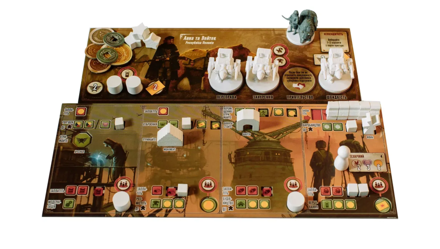 «Коса» впечатляет своим подходом к игровому процессу. Это классическое евро с элементами контроля территорий, где каждый компонент — от миниатюр мехов до карт приключений — работает на создание уникальной атмосферы. Ваша цель — не просто захватить все вокруг силой, а взвешенно развивать собственную экономику, наращивать военную мощь и завоевывать популярность среди населения. Уникальные планшеты игроков, которые распределяются случайным образом, заставляют каждый раз адаптировать свою стратегию, обеспечивая невероятную глубину каждой партии.