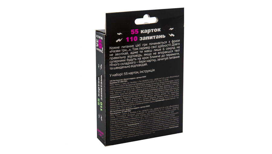 Strateg Успей за 6 Секунд! — это современная интерпретация игр на скорость ответа, которая сделала ставку на мгновенную реакцию, открывая новые грани веселья для больших компаний. Набор включает в себя 70 двухсторонних карточек из плотного картона, на которых размещено 140 разнообразных вопросов — от бытовых тем до шуточных заданий. Дизайн карточек выполнен в контрастных цветах с четким шрифтом, что обеспечивает отличную читаемость даже в быстром темпе игры, а прочная конструкция коробки отличается практичностью, позволяя легко транспортировать игру на любое мероприятие. В комплект входит инструкция, предлагающая четкий алгоритм действий, что гарантирует комфортную эргономику игрового процесса и позволяет полностью раскрыть потенциал игроков, стимулируя их выдавать самые неожиданные ответы всего за несколько мгновений.