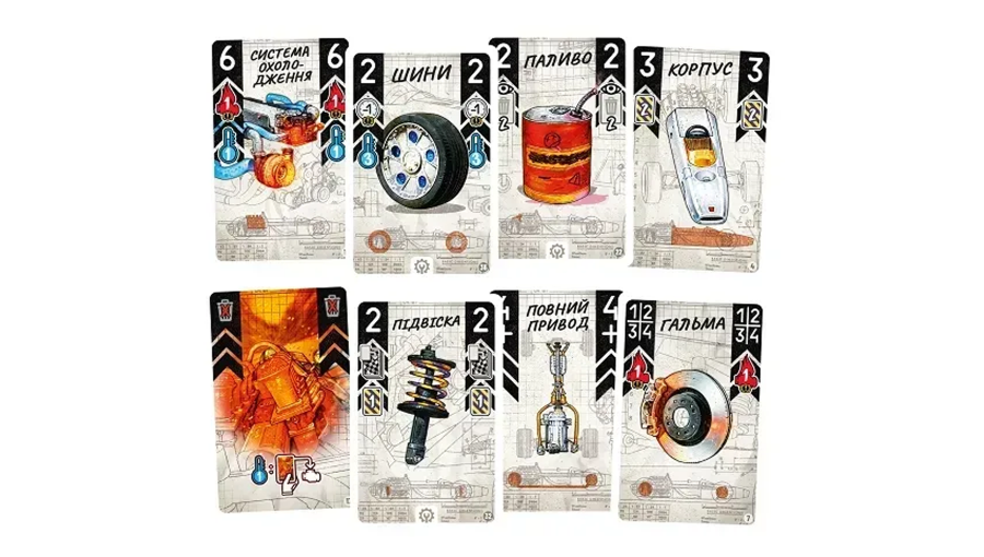 У каждого игрока есть собственная колода, состоящая из карт скорости, Турбо и Стресса. Именно они определяют движение болида и уровень риска.