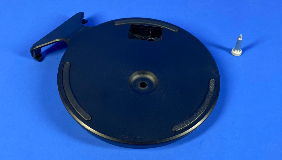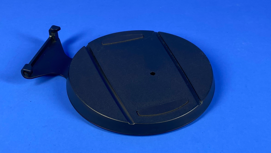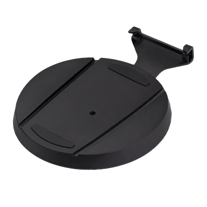Конструкция выполнена из прочного пластика черного цвета, который органично сочетается с дизайном PS5. Верхняя часть имеет направляющие для точного позиционирования корпуса, а центральное отверстие позволяет надежно закрепить консоль винтом при вертикальной установке.