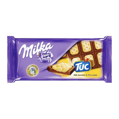 Milka x TUC отличается уникальной рецептурой, в которой фирменный нежный молочный шоколад Milka сочетается с хрустящими солёными крекерами TUC. Такой контраст создаёт гармоничный вкус: мягкая, тающая текстура шоколада дополняется приятным хрустом и лёгкой солёностью крекера. Это делает каждый кусочек насыщенным и небанальным.