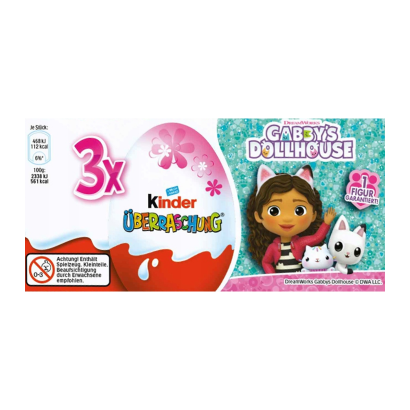 Шоколадное Яйцо Kinder Surprise Бокс Gabby's Dollhouse 3 Яйца 60g выделяется среди других яиц благодаря тематическим персонажам из популярного мультсериала Gabby's Dollhouse. В сравнении с другими наборами, это яйцо сочетает сладкий вкус Kinder и возможность собрать интересную коллекцию фигурок.