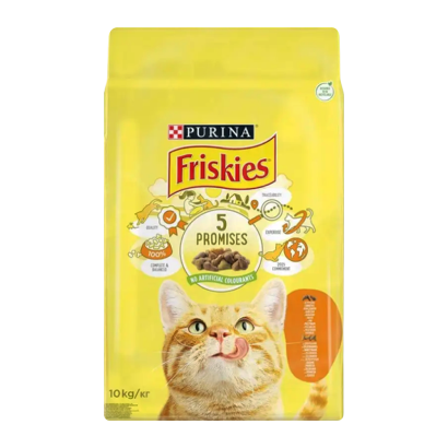 Сделайте время еды захватывающим с помощью Purina Friskies Chicken и Vegetables for Cats 10kg, который предлагает разнообразные текстуры и формы для стимулирования чувств вашей кошки. Независимо от того, нежные кусочки курицы или хрустящие овощные кусочки, эта пища обеспечивает пир, который увлекает естественные инстинкты вашей кошки и восхищает ее во время еды.