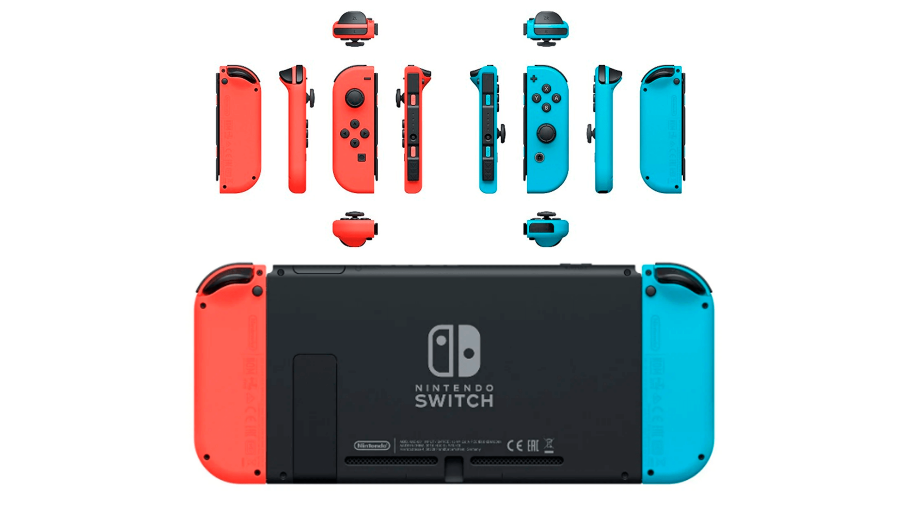 Входящие в комплект Joy-Con - это пара беспроводных контроллеров, которые можно использовать с Switch в различных конфигурациях. Каждый Joy-Con имеет размеры 10.16 х 3.55 х 1.27 сантиметра (без учета аналогового стика и выступов плечевого курка) и выглядит как половина обычного геймпада, встроенная в округлую рукоятку для одной руки с большой плоской стороной, оснащенной крепежной планкой.