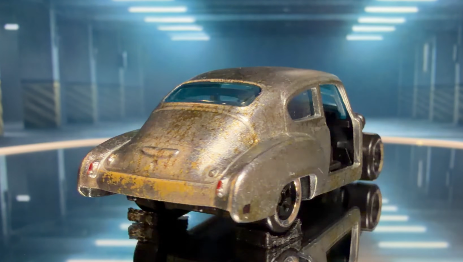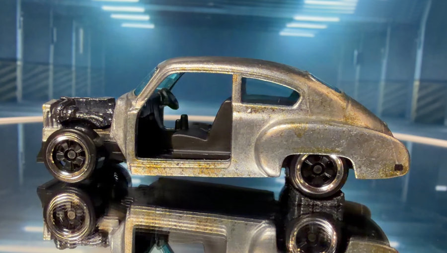 Модель Hot Wheels под артикулом JKX11 мастерски воссоздает специфический облик кастомного Fleetline. Корпус, изготовленный по технологии литья под давлением (die-cast), передает массивные обтекаемые формы американского автопрома конца 40-х годов. Серебристая окраска имитирует неокрашенный металл с характерными следами эксплуатации и «ржавчины», что полностью соответствует экранному образу. Особого внимания заслуживает детализация открытого двигателя и импровизированной системы охлаждения, которые Mattel удалось воплотить даже в таком компактном масштабе.